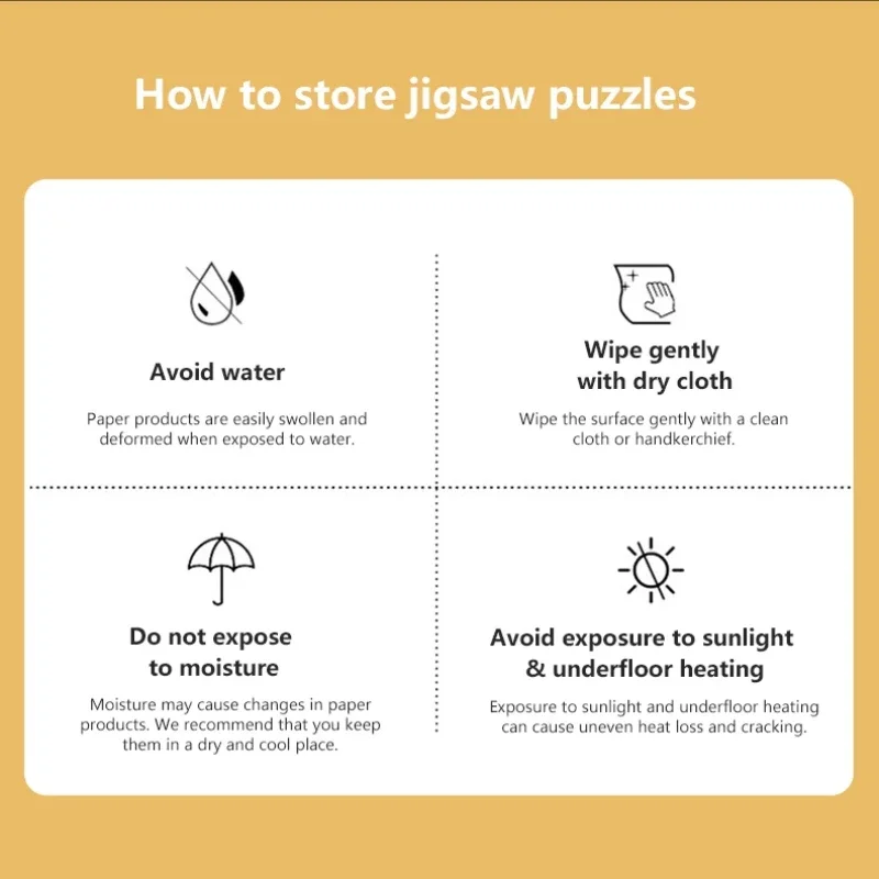 The puzzles are easy for people to put together; the finished puzzle displays beautiful landscape;Easy to clean: This puzzle features an easy to clean surface that keeps your puzzle looking new, making cleanup simple after accidental spills.