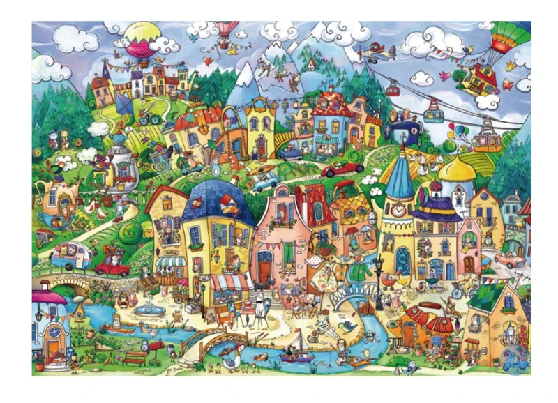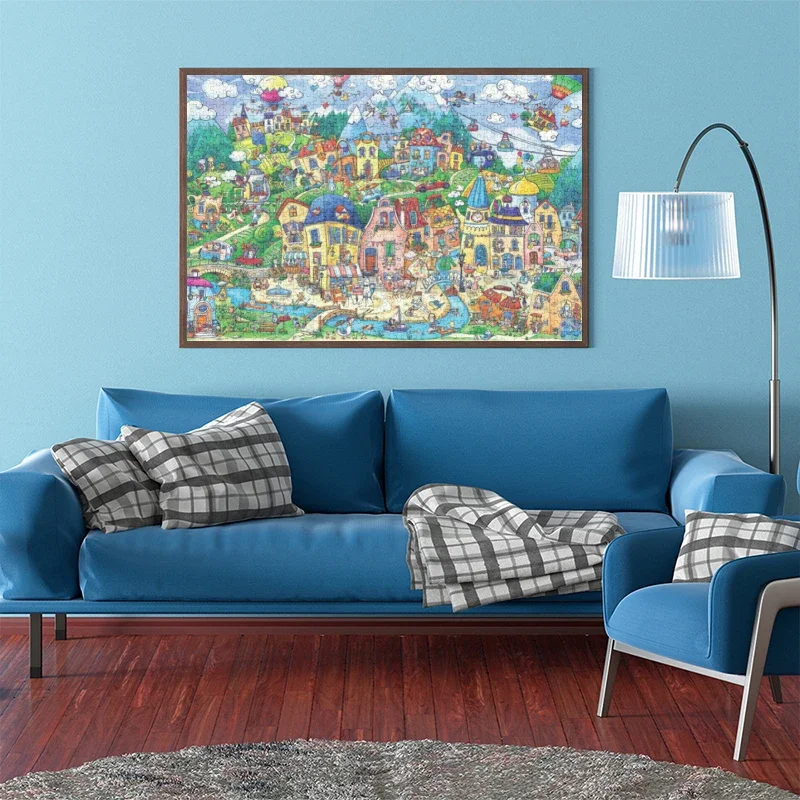 70*50Cm Adult 1000 Pieces Jigsaw Puzzle Happy Town Beautiful Landscape Paintings Stress Reducing Toys Christmas Gifts