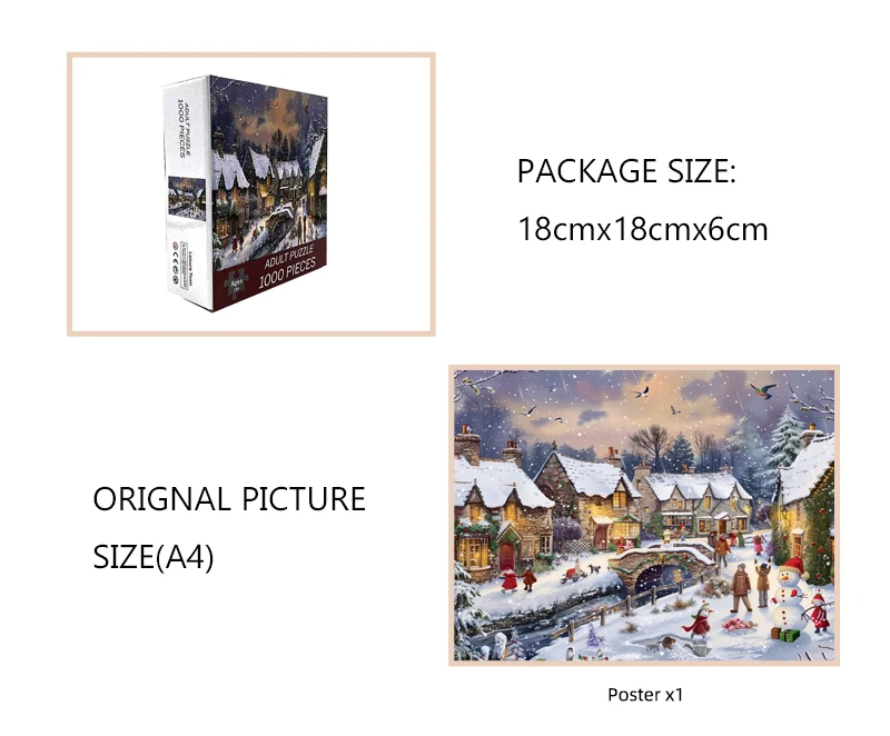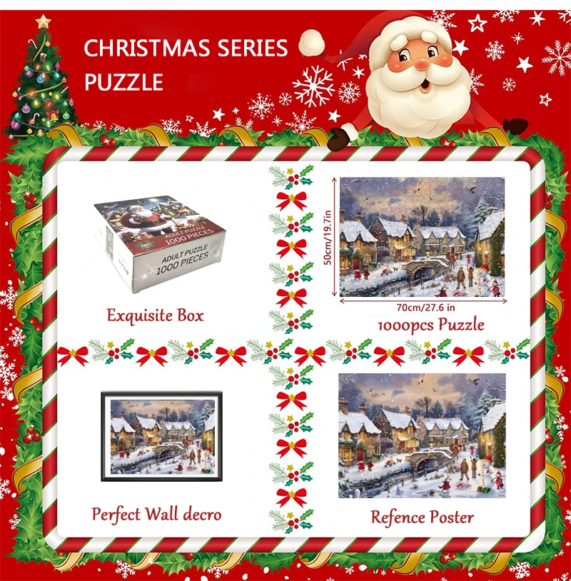 Merry Christmas Puzzle 1000Pieces Paper Puzzle Adult Puzzle 70*50Cm Christmas Town Difficulty Jigsaw Puzzles Home Wall Decro